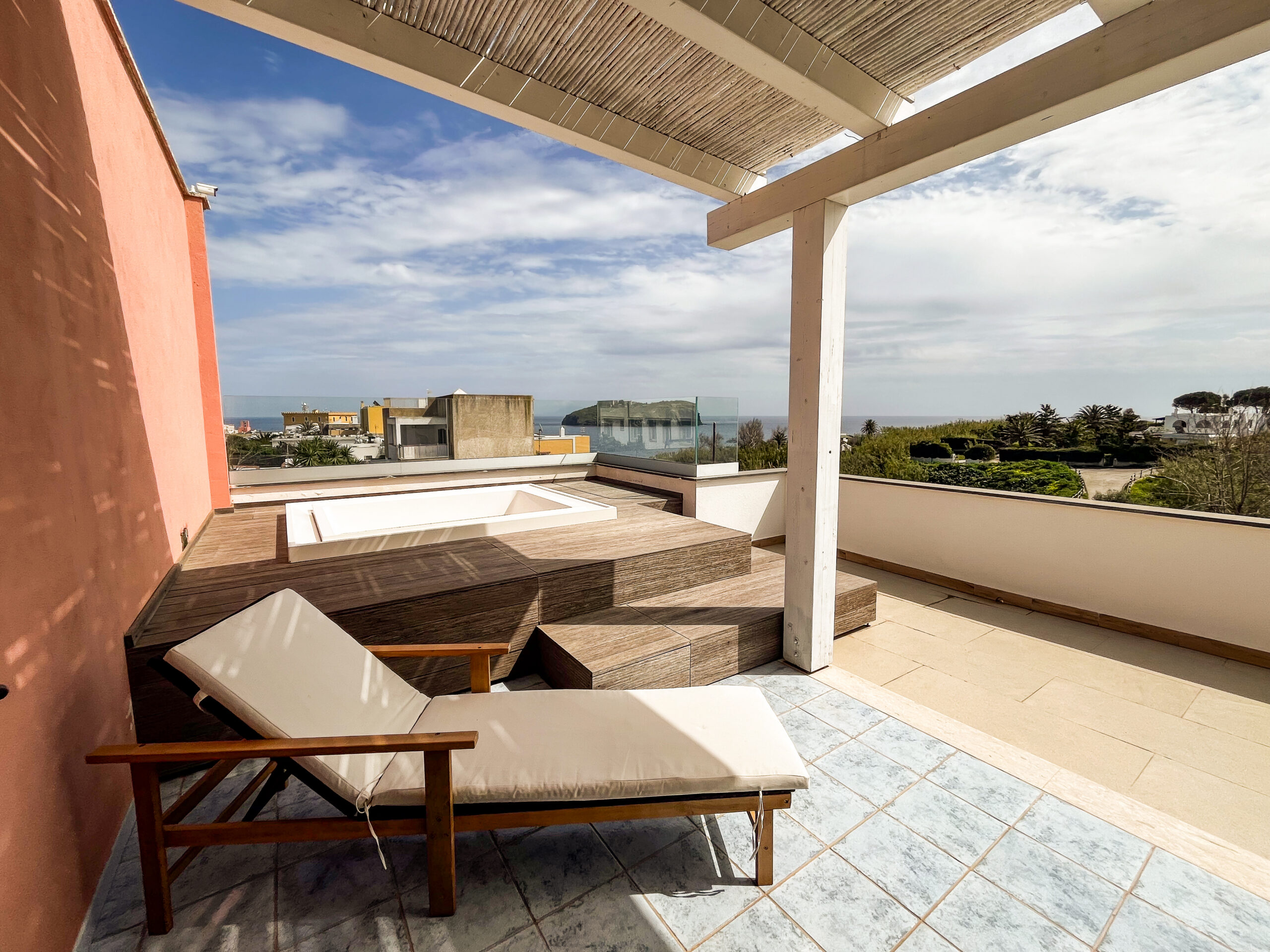 - Balcone e terrazzo privato con vista mare, sdraio e vasca idromassaggio